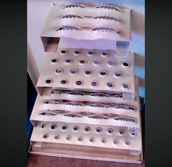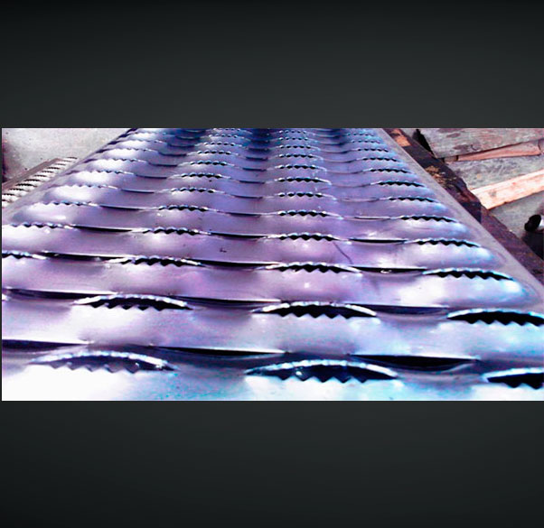 La superficie dentada antiderrapante del monten es fabricada en forma de rombo o circulo permitiendo el drene de líquidos, lodo, virutas, grasa, detergentes.